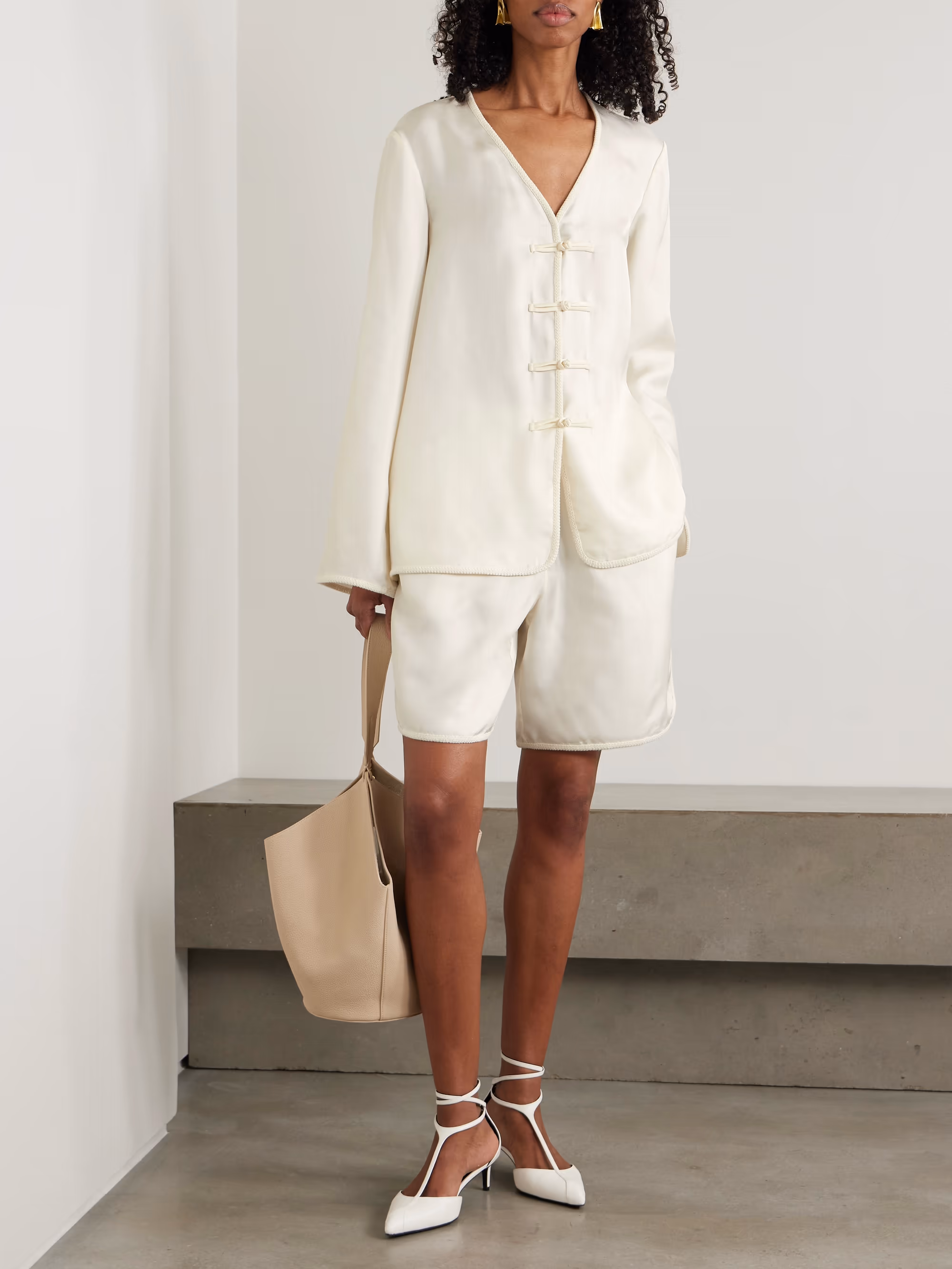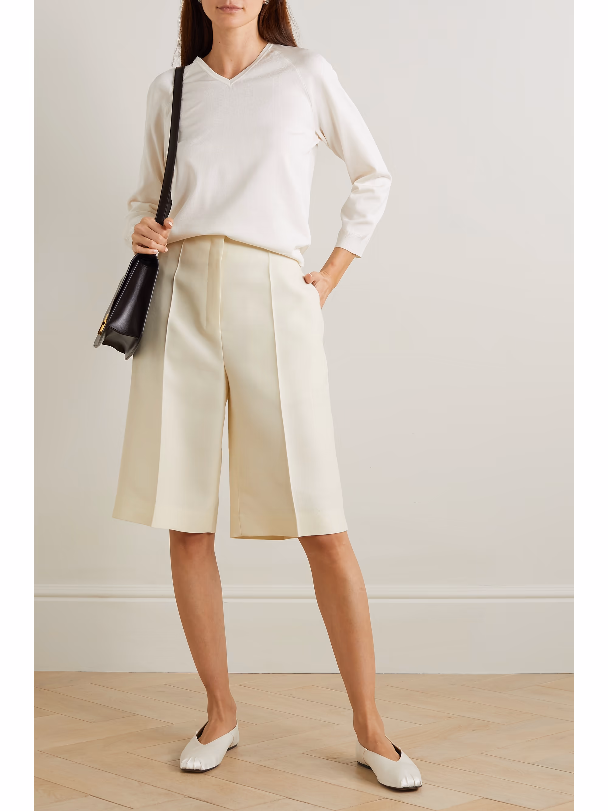 Шорты из смеси шерсти и шелка THE ROW NET-A-PORTER, слоновая кость