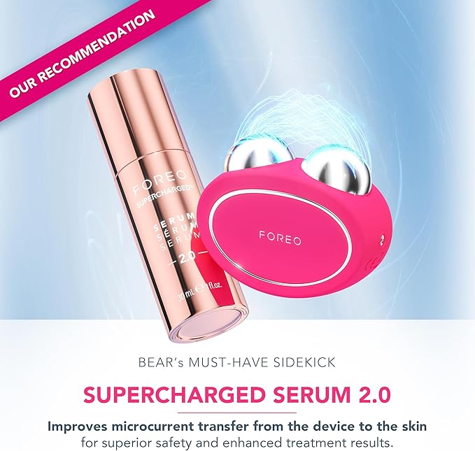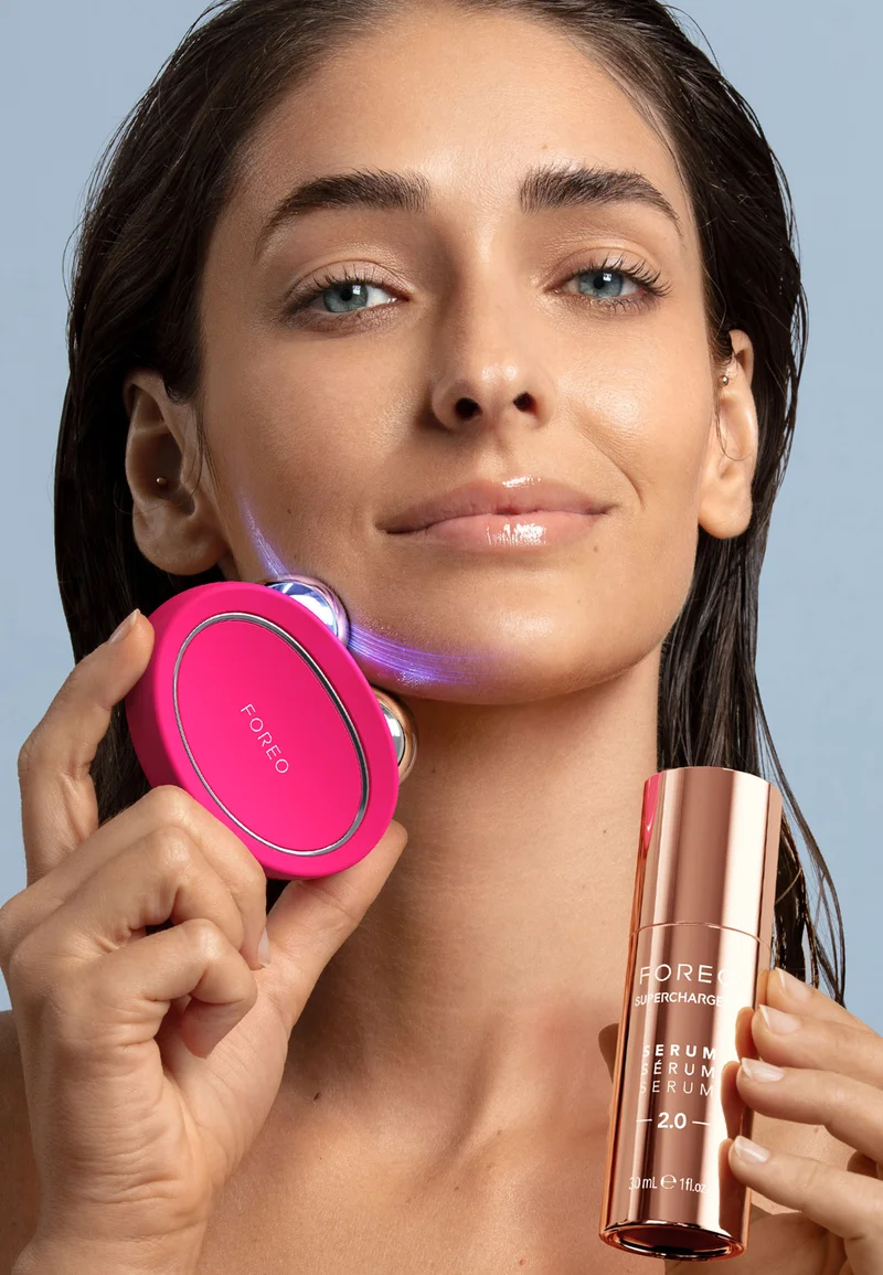 Шведская процедура подтяжки лица. Для достижения оптимальных результатов сочетайте инструмент для моделирования лица BEAR 2 с проводящей сывороткой FOREO SUPERCHARGED Serum 2.0, клинически доказано увеличивающей выработку коллагена 1 типа.