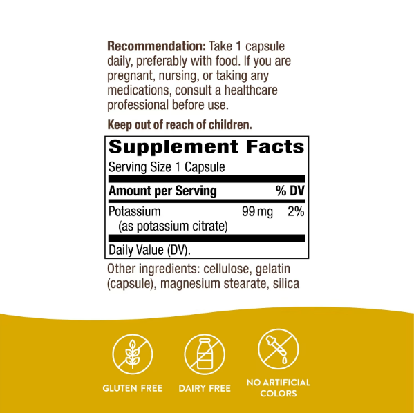 Nature's Way, калий, 99 мг, 100 капсул