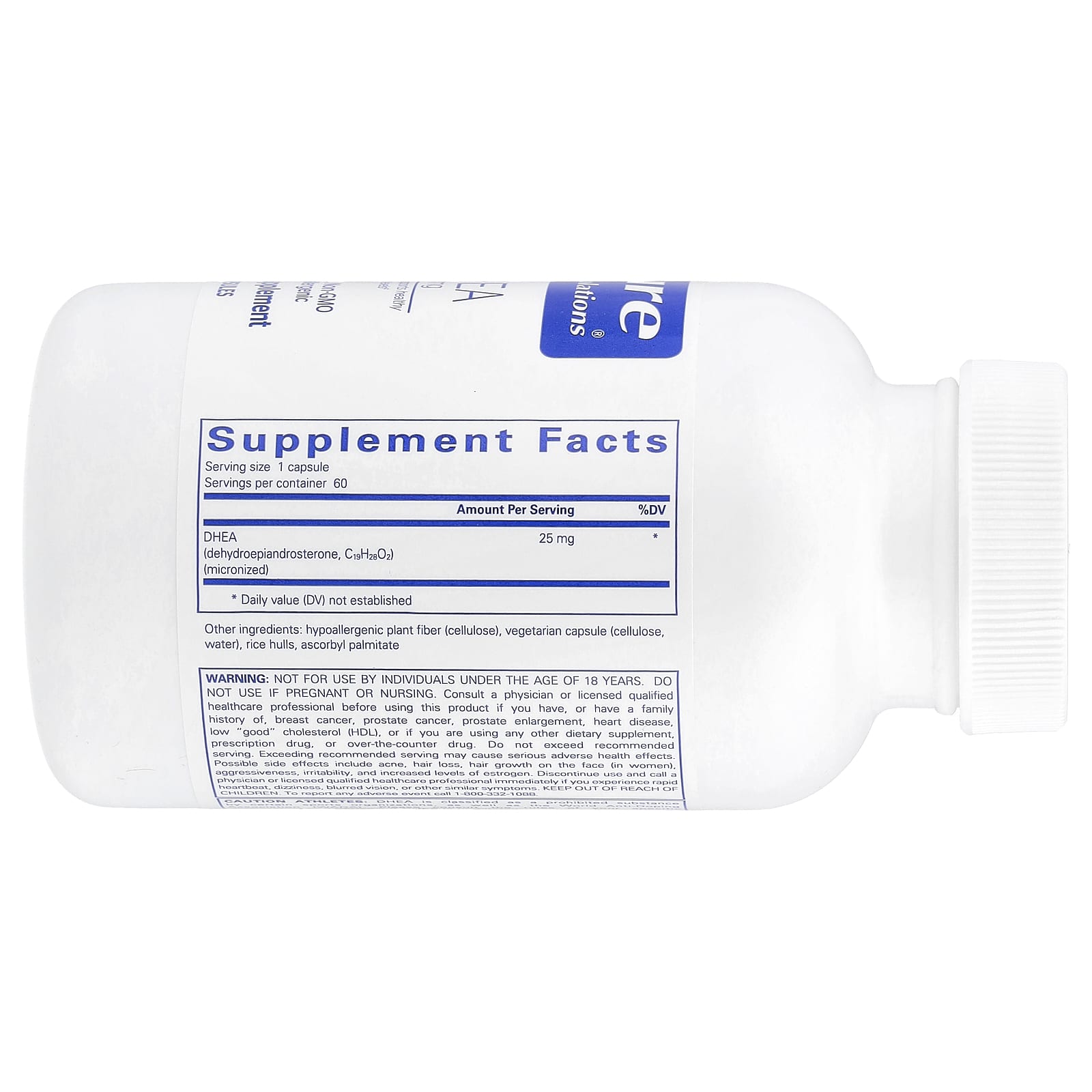 Pure Encapsulations, ДГЭА, 25 мг, 60 капсул
