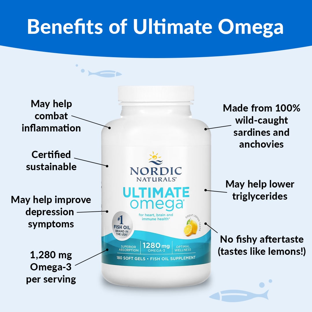 Добавка Ultimate Omega® от ведущего бренда на рынке рыбьего жира в США‡ предлагает концентрированные уровни омега-3 для высокоинтенсивной поддержки с помощью незаменимых жирных кислот. Ultimate Omega помогает оптимизировать иммунную функцию, поддерживает здоровье мозга и, как было доказано клинически, поддерживает здоровье сердца.