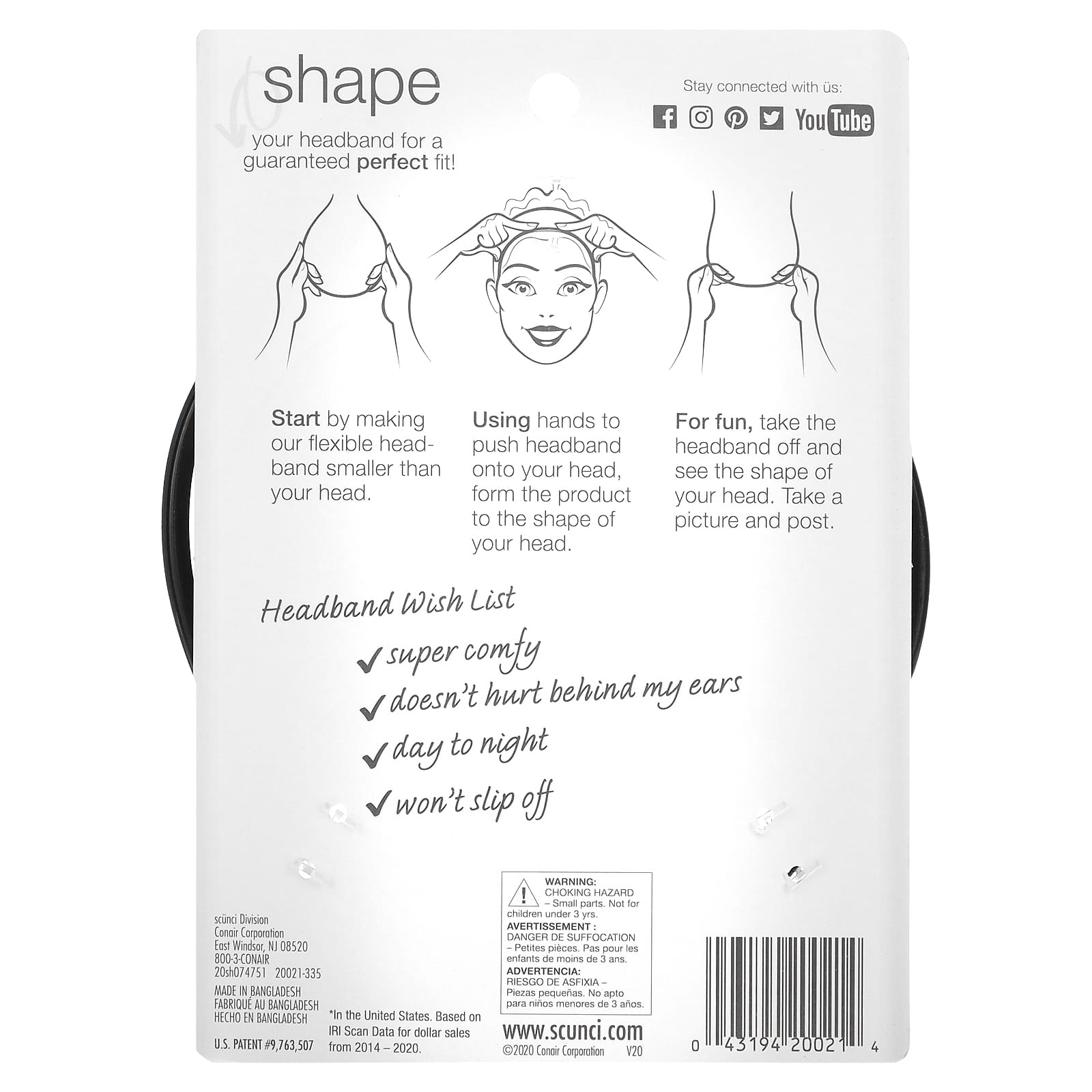 Scunci, Гибкий обруч No Slip Grip, 1 штука