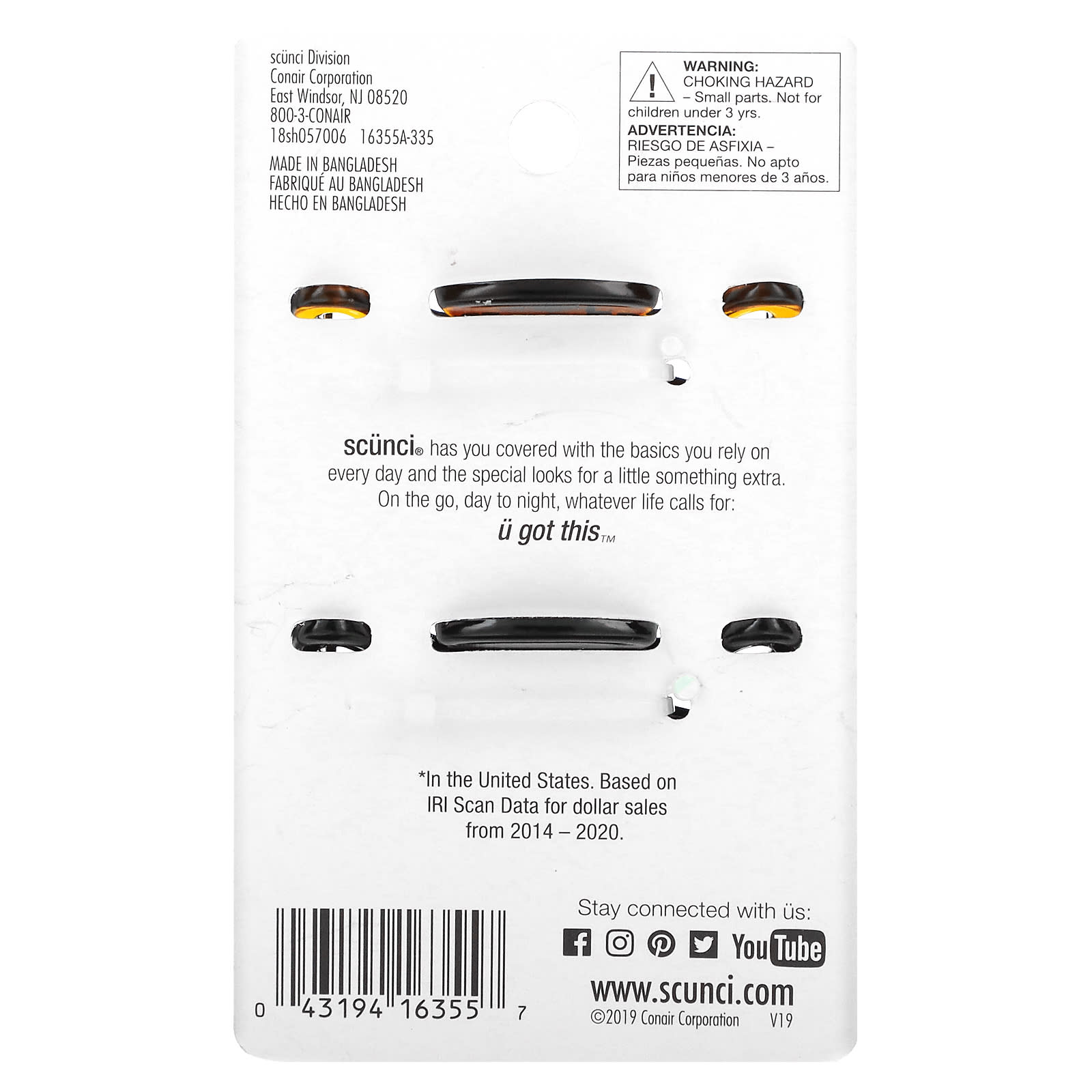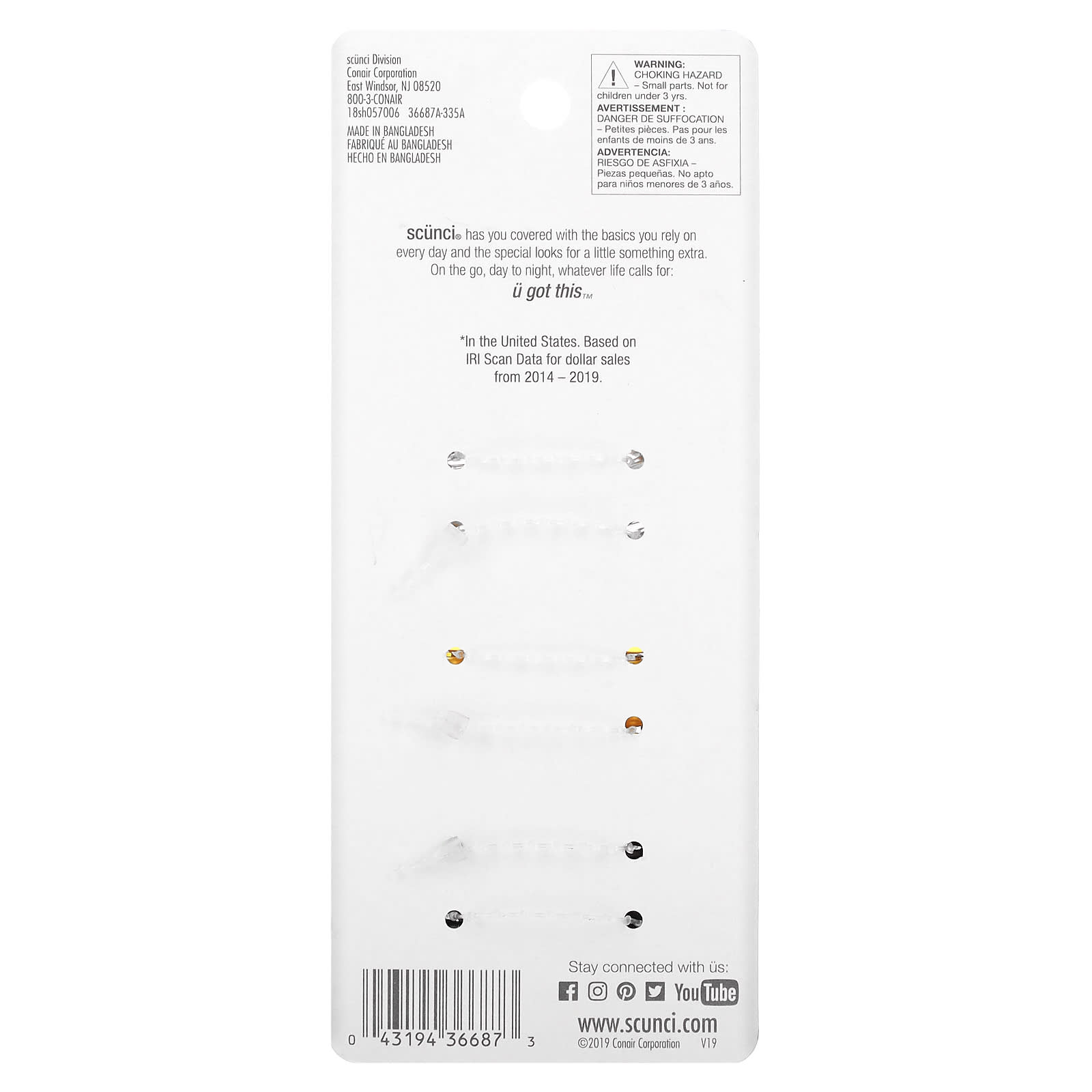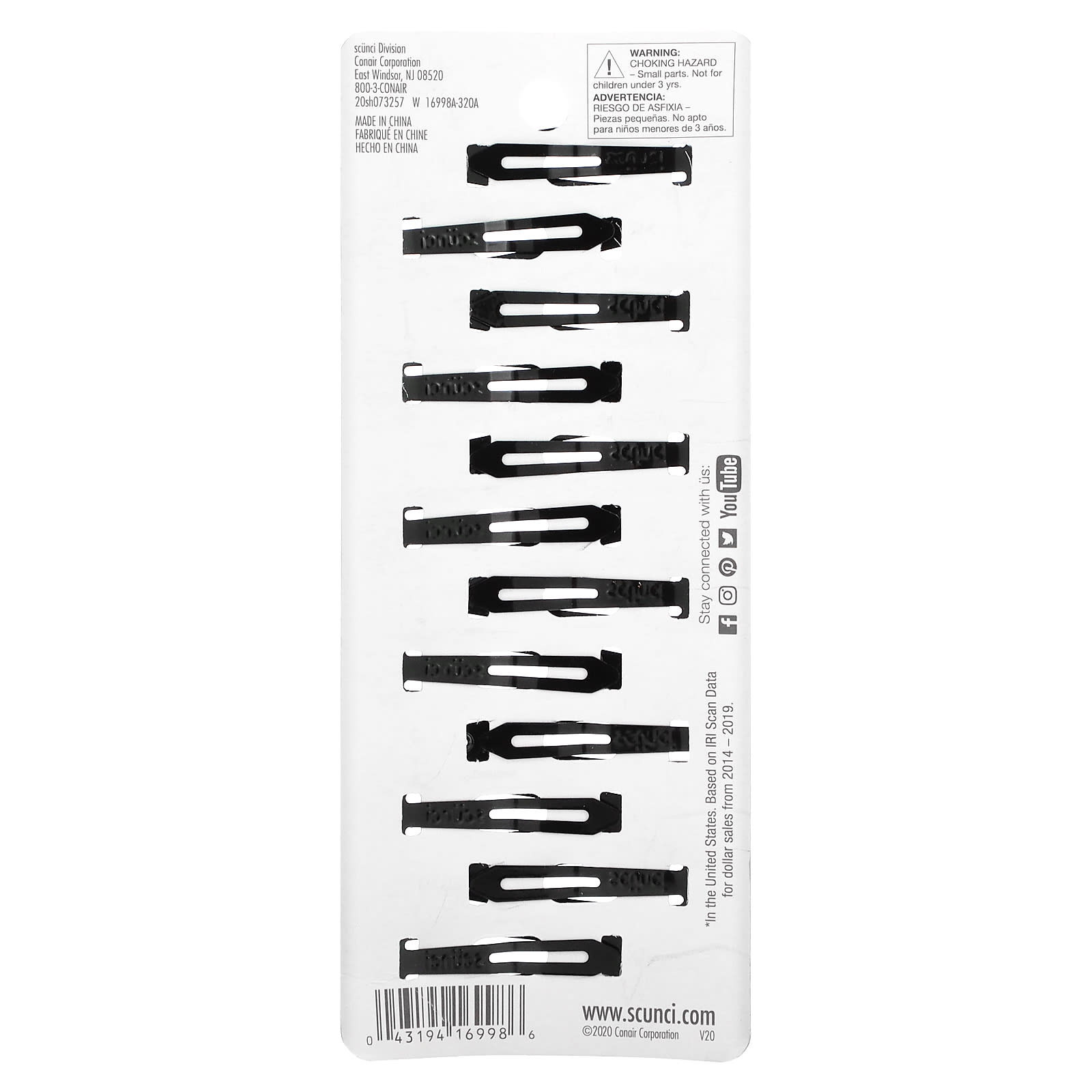 Scunci, Заколки для волос, черные, 12 штук