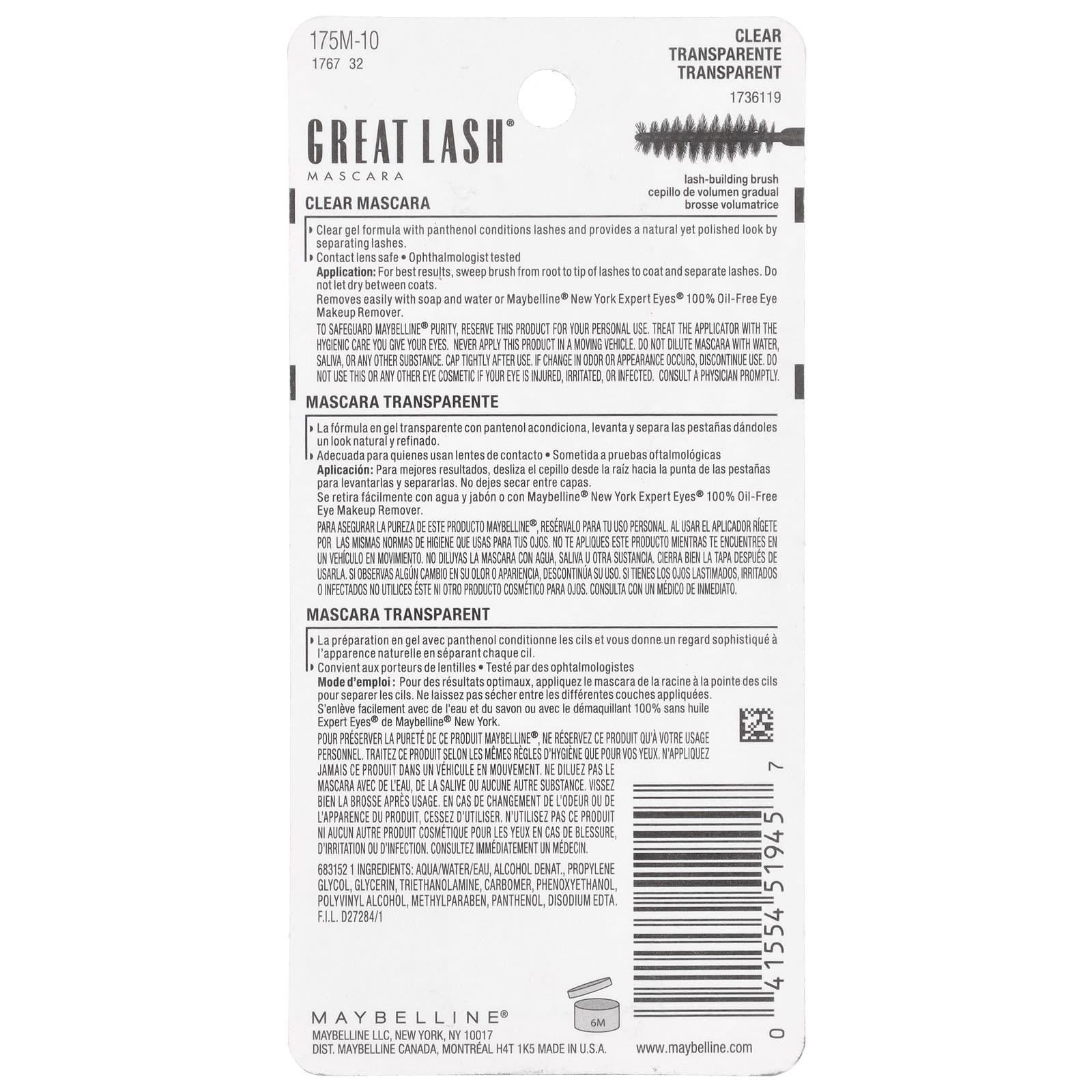 Maybelline, Great Lash, тушь Clear 110, 13 мл